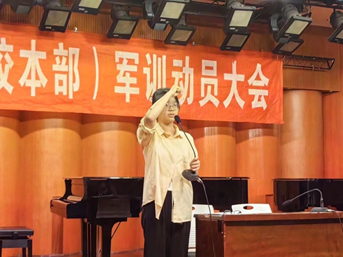 大会由学生科科长董畅老师主持,首先全体师生奏唱国歌。然后由唐书记强调组织军训的重要性:军训课是实施《国防教育法》、培养同学们德智体美劳全面发展的重要举措,对同学们增强国防意识,锻炼意志,树立勇于拼搏,敢于摔打的毅力等具有重要意义,祝愿同学们此次军训圆满成功。再后由陈叶丹老师和董畅老师分别对军训须知、川音艺术附中军训管理规定和相关条例进行了详细讲解,董畅老师要求大家注意纪律,团结友爱,搞好宿舍卫生,自觉爱护武器装备,严禁携带与军训无关物品等相关要求,并特别强调不得泄露教官编号,教官照片等所有相关信息发至网络等。最后由高二二班唐嫣旎同学代表军训学生发言表态,并带领全体同学宣誓:听从指挥,服从命令,坚韧不拔,团结一心,挑战自我,超越自我;以战士的情怀,用军人的姿态,去践行青春的誓言,去体验生命的精彩。