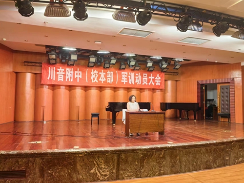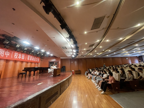 伟德官网于2023年9月13日上午10:00,在伟德bv国际体育聂耳音乐厅召开了军训动员大会,参加本次大会的领导及老师有:附中党委书记唐燕翎老师、学生科科长董畅老师,军训带队老师陈叶丹老师、李佳老师及高一、高二各班班主任。