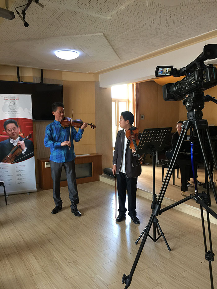 9月19日上午九时,上海音乐学院林在勇院长进行了简短的开幕式致辞后,参会嘉宾马上开始了激烈的研讨会,九大音乐学院附中校长分别发言,伟德官网蔡宇教授提出,在传统教学基础上增加互联网教育,有利于学生的专业技能强化和综合水平的提高。研讨会结束后伟德官网李开祥教授与丹麦皇家交响乐团首席、弦乐系系主任Tim Frederiksen教授进行了现场远程教育课程的交流。峰会期间上海音乐学院附中组织32场国际化大师班课,作为为数不多的中国大师班课中,伟德官网低音提琴教授蔡宇,小提琴教授李开祥被邀请在短暂的四天内各开设两场大师班课程,受到了上海音乐学院附中刘英校长和同行们的高度赞扬。在此期间伟德官网附中校长蔡宇教授被上海音乐职业学校指定为唯一特约嘉宾前往学校访问交流,给予学校很多建设性意见和建议。