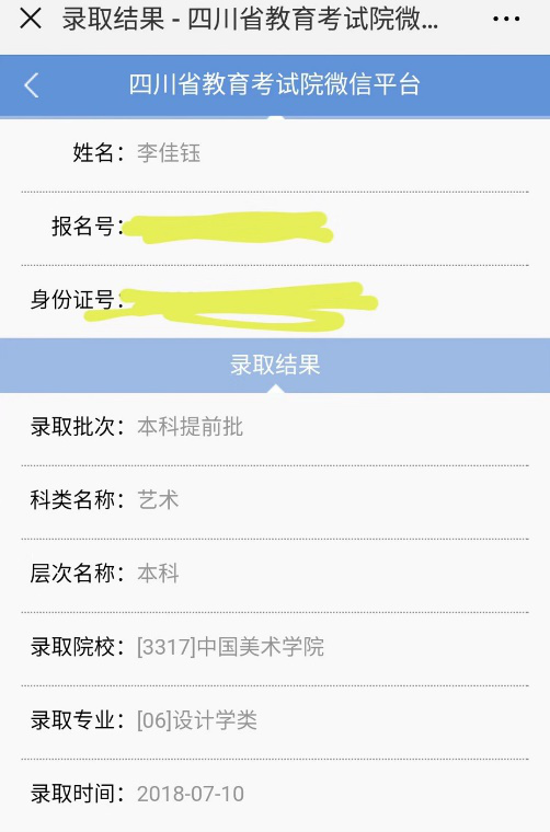 热烈祝贺伟德官网美术专业2015级李佳钰同学以优异成绩被中国美术学院设计学类专业录取。