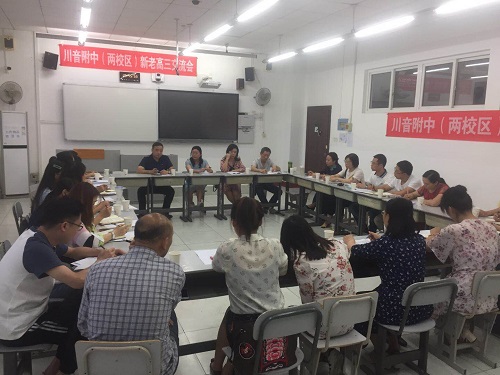 为总结经验,突破问题,展望未来,提升教育教学质量,于2020年9月15日下午,在学校领导的带领下,各科室的具体安排下,川音附中(两校区)新老高三交流会在新都校区开展。
