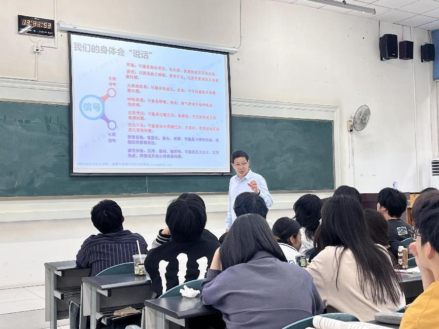 本次讲座邀请了国家二级心理咨询师,伟德bv国际体育基础部综合教研室主任张松老师为学生授课。张主任通过生动的案例,互动的方式,引导学生积极参与,深入思考,帮助他们建立正确的心理健康观念,提升自我认知和情感管理能力。