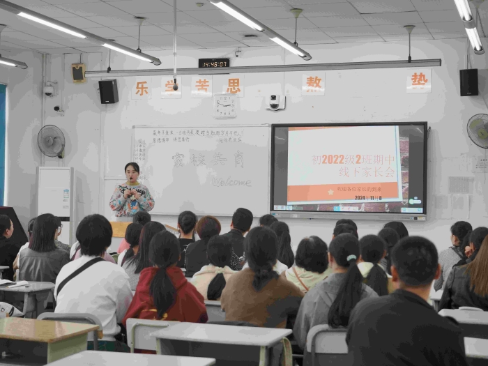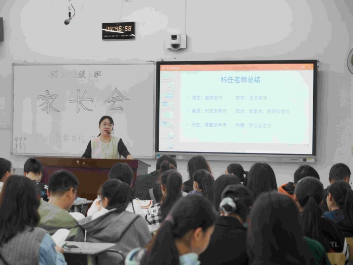在各班班级家长会上,班主任和专业老师与家长做了深度交流,并报告了学情分析和学科目标计划。