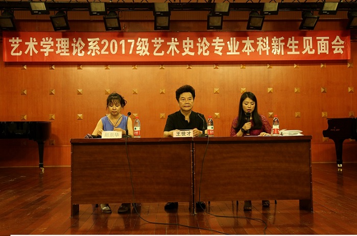 会议首先由系主任王世才教授对加入艺术学理论系的大一新生表示了祝贺,同时向新同学们提出了几点希望。他强调,在遵守校规校规的基础上,应尽快完成角色转变,适应大学自主学习的全新模式;应不断加强自身修养、提高整体素质,在学校生活中养成良好的学习习惯并合理规划自身学习目标。