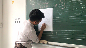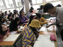 噶玛嘎孜画派属于藏族唐卡的三大流派之一,流行于藏区东部,以四川省甘孜德格和西藏昌都及青海玉树为中心,其作品施色浓重,对比强烈,画面富丽堂皇。嘎玛老师从事唐卡绘画二十余年,绘制唐卡上千幅,此次活动以释伽牟尼佛像为例,通过构图、度量与线条为学生阐释唐卡独特的魅力。同时,嘎玛老师在黑板上一笔一笔示范了释迦牟尼佛五官比例与头像画法,并耐心帮助每一位学生,一笔一画地完成了佛头的线稿。最后,嘎玛老师对学生的作品逐一进行了点评和修改。