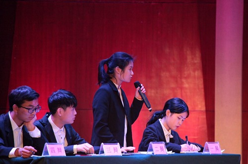 决赛辩题为“不忘初心,贵在认知,还是贵在行动”。正方为我院“思辩队”,他们提出“知先于行”的观点,认为正确的认知对于行动的重要性,唯有充分的认知方可强化对初心的坚守。反方“戏剧之光队”,则提出“纸上得来终觉浅,绝知此事要躬行”,认为实践是检验真理的唯一标准,唯有行动才能够践行初心。精彩的呈词,出色的观点,敏捷的思维,默契的配合,双方选手在激烈的对决中针锋相对,步步紧逼,一次次将比赛推向高潮,台下观众也是激情澎湃,掌声不断。本场比赛堪称本届辩论赛的巅峰对决,最终我院“思辩队”凭借沉稳的辩风和机智敏捷的应答以总分87.5分获胜,荣膺本届辩论赛的冠军,2016级文管班的蒋静同学获得“最佳辩手”。