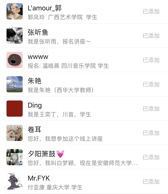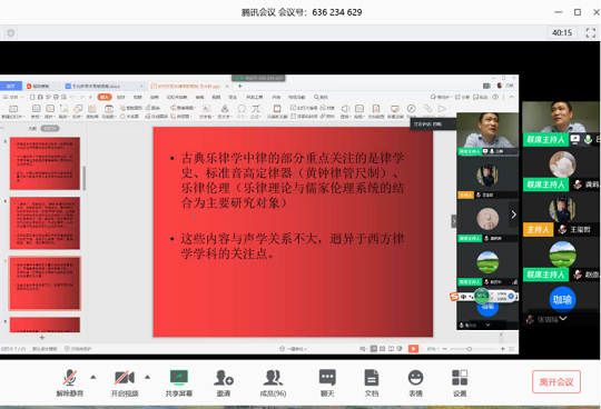 本次“走进王光祈“线上会议交流的成功举办,不仅得到了本校师生们的热情响应,同时受到了来自中央音乐学院、南京艺术学院、广西艺术学院、西华大学、西华师范大学、江苏师范大学、佳木斯大学音乐学院、安徽师范大学等高校师生的主动参与。一定程度上扩宽了我院学生的创新精神和实践能力,同时架起了我院师生和各大高校师生学术友谊的桥梁。在今后的学习中,希望同学们继续发扬自身的创新精神与勤勉踏实好学的学术精神,再接再厉,继续为伟德官网创新创业发展贡献自己的独特力量。