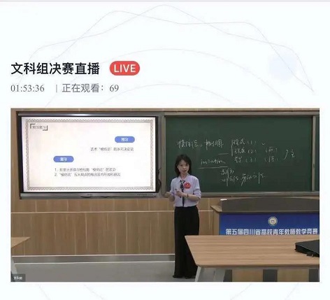 杨然老师的获奖,是我院众多优秀教师中的一个代 表。长期以来,我院坚持与践行立德树人的育人目标,以加强师德师风建设、锤炼教师教学基本功为重点,坚持教师教学与学术科研同步并行。透过本次教学比赛,继续坚持“以赛促教、教赛相长”的理念,在专业领域中,为打造我院专业化教师队伍而不断探索。