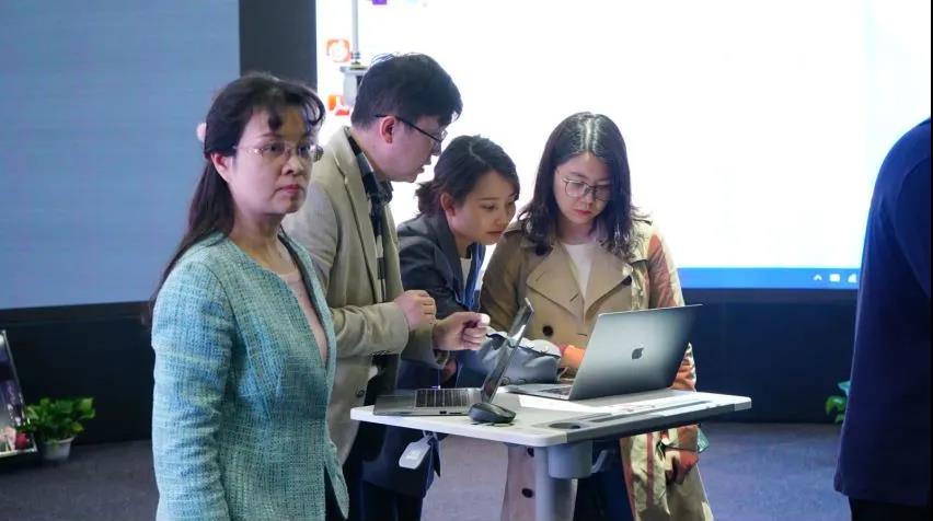 培训共分为五个主要环节,“全景教室五种教学模式介绍”、“Live模式功能操作”、“混合式课程设计培训”、“全国直播课程注意事项”、“自由讨论”,其中前四个环节由培训老师逐一仔细讲解,其中在“Live模式功能操作”环节中培训人员通过连接不同网络终端来模拟实际上课场景与在场老师进行互动,并观看全景教室授课效果,解答各位老师在操作当中遇到的问题。