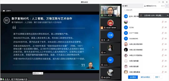 2021年11月23日晚上19点,艺术学理论与管理学院2021系列讲座在腾讯会议举行。此次讲座我院邀请到中国高等教育出版社人文社科学术事业部副主任(主持工作)、编审,中国艺术学理论学会副秘书长,中国美术家协会会员,中国美术家协会美术教育委员会委员、中国艺术研究院、东北师范大学、大连大学、郑州大学、湖北大学兼职教授,博士生导师蒋文博教授,讲座题目为《数字复制时代艺术的可能》。讲座由艺术学理论与管理学院院长赵崇华教授主持。