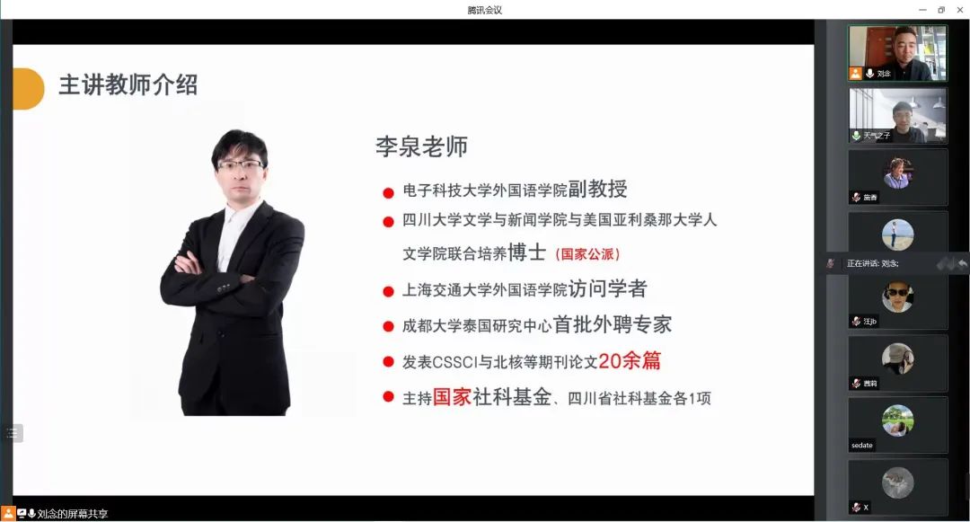 最后,来自电子科技大学外国语学院的副教授李泉老师,作为特邀嘉宾对刘念和刘弋枫两位老师的精彩分享进行了学术回应,进一步讨论了硕士论文选题所需注意的问题。