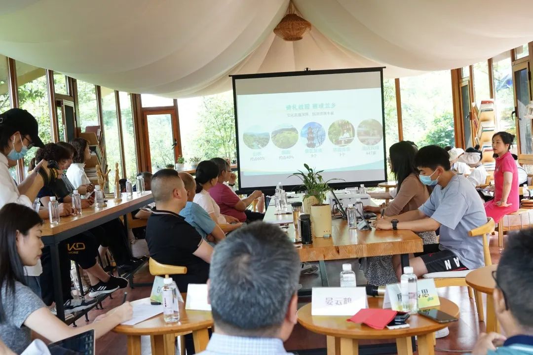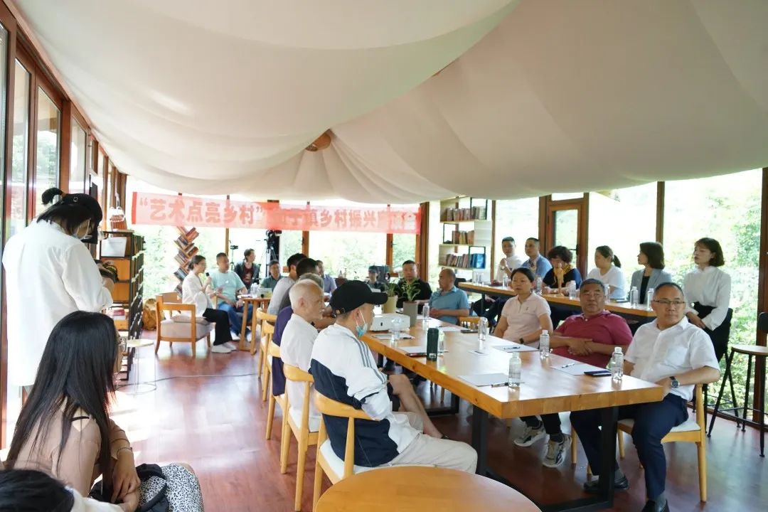 座谈会上,中共崇州市街子镇党委书记晏云鹤致辞,镇党委副书记康楷翔、镇党委委员副镇长袁肖霞、镇党委委员副镇长胡志强分别介绍街子镇的资源和乡村振兴战略实施情况,发布了街子镇各社区的机会清单。廖勇副院长做《艺术赋能:乡村振兴如何塑造亮点?》主题演讲。他从乡村与乡村振兴战略20字方针、艺术赋能乡村振兴的路径选择这两个方面,深刻剖析了乡村振兴战略在美丽乡村的具体表达。在主题演讲中,他首先提出对乡村•印象概念的认识,乡村是具有自然、社会、经济特征的地域综合体,兼具生产、生活、生态、文化等多重功能,与城镇互促互进、共生共存,共同构成人类活动的主要空间;乡村以其悠悠自然和淳朴的生活气息,极大地吸引着现代城镇化快节奏生活中日夜忙忙碌碌的人们,乡村与乡村振兴成为社会关注的新视点!其次,他创新性地提出街子镇乡村振兴的路径选择:街子镇作为文化底蕴深厚、生态环境优美的古镇,首先,应以艺术塑大美乡村之形,建设生态宜居的乡村美学生活新场景,具体包括建筑、园林、绘画、装置艺术等的呈现;其次,应以艺术铸乡村文化之魂,使其重现返朴归真的乡村田园牧歌文化艺术之美,具体包括诗词、音乐、舞蹈、戏剧等艺术的融入;再次,应以艺术兴乡村产业之旺,依托乡村资源,融非遗、民俗、设计、展陈、营销等,以艺术聚乡村旺盛人气,助推乡村文旅经济大发展!乡村振兴路径千万条,根本在于找准自身优势,着力一个点,持续推进艺术+,实现资源向社会价值、经济价值的最大转化!最后,廖勇副院长生动形象地列举了艺术赋能乡村振兴之浙江温州永嘉上日川村(苕溪国际艺术村)、全国首个“大学+乡村”模式为核心的乡村振兴示范基地川音艺谷等鲜活案例。