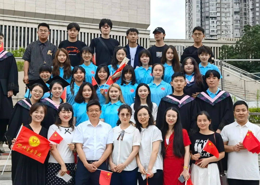 6月13日,天朗气清,惠风和畅。伟德bv国际体育2022年毕业典礼暨授位仪式在成都城市音乐厅隆重召开,上千名师生齐聚一堂,共同庆祝这一盛事。艺术学理论与管理学院高度重视此次毕业典礼,党委书记、院长赵崇华,副院长廖勇,党委副书记丁一芩,办公室主任王馨敏,副科级组织员周舟,分团委书记宋希,辅导员吕思雨等领导及老师出席此次毕业典礼并合影留念,为毕业生传递一份“海阔凭鱼跃,天高任鸟飞”的殷切祝福。