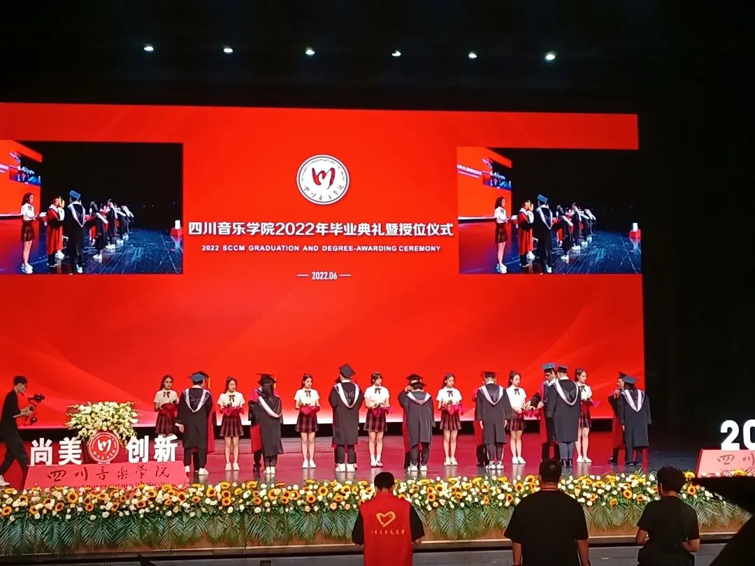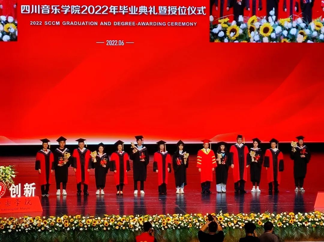 毕业典礼在伟德bv国际体育学子的集体宣誓中拉开序幕,学院党委副书记候钫宣读2022届四川省优秀毕业生、伟德bv国际体育优秀毕业生的表彰决定,学院党委书记文云英上台为这些荣获优秀毕业生的川音学子颁发荣誉证书。我院白马纳尔布、代滨弦同学分别作为四川省优秀毕业生、伟德bv国际体育优秀毕业生代表领取荣誉,为艺术学理论与管理学院学生树立了良好的榜样。