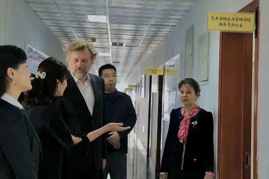 宾客一行人参观了我院教学展览,与我院教师进行了愉快座谈、交流。随后,鲍里斯•格雷比院长为我院师生作了《数字时代艺术与文化的未来:创新、教育与职业机会》的主题讲座。讲座基于艺术管理发展与实践的创新性议题展开,就现代化技术在教育体系中所面临的实践可能与创新思维进行了详细阐释,提出教育以“培养可持续发展的学习能力”为理念。