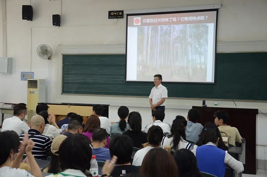 随后,由廖勇副院长向2023级新生介绍学院概况、学院培养方案及学院全体教师。廖副院长借校门口的白桦林向新生分享自己的艺术感悟,表达对新生的期许,希望每一位川音人都可以成为艺术丛林里的一部分,成为一棵棵高大挺拔的有用之“材”。分享的最后,廖院长引用川音Idea惠风创意学会会歌希望同学与老师们携手在青春路上一起加油干!