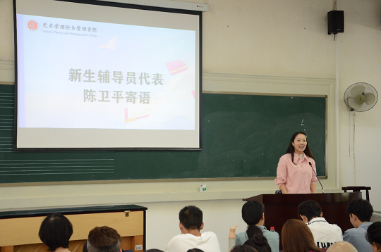 新的开始,新的启程。9月12日下午一点,艺术学理论与管理学院2023级新生见面会在第一教学楼成功举办。艺术学理论与管理学院党委书记、院长赵崇华、副院长廖勇、党委副书记丁一芩,全体教师及2023级新生出席见面会。本次见面会由党委副书记丁一芩老师主持。