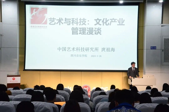 在两个多小时的讲座中,庹祖海研究员以其长期从事国家层面文化创意产业和文化市场研究、政策制定参与和执行,文化创意产业央企高管的经营管理经验,以及近年来对科技与艺术融合发展的深邃思考,娓娓道来,有清晰的政策解读,有生动的案例分析,有最新的理论架构探索。他从文化的逻辑、商业的逻辑、法律的逻辑三个层面和技术的支撑几个维度,深刻阐释了文化创意产业或艺术产业经营管理涉及的诸多要素。他认为,文化是核心,涉及价值创造,我们必须坚守马克思主义这一“魂脉”和中华优秀传统文化这一“根脉”的有机结合,弘扬社会主义核心价值观,发展先进文化,弘扬革命文化,传承中华优秀传统文化,彰显信仰之美、崇高之美,抵制“三俗”;商业是关键,在进行文化产品的市场交易时,我们必须坚守文化产品的社会效益与经济效益“双效统一”原则;法律是底线,文化创意产业的经营管理必须遵守国家的各项法律法规。而新质科技的快速发展,则为文化创意产业的内容生产、项目运营管理、市场管理等,提供了全新的技术支撑和更先进的管理工具。
