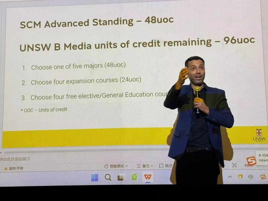 为更好拓展我院师生国际视野,搭建信息平台,据艺术学专业需求,9月20日下午,“中外高水平大学学生交流计划”中澳“2+2”学分互认联合培养项目(下称“中高计划”)2023级学生见面会在传媒学院4教102教室举行。新南威尔士大学人文、设计与建筑学部国际事务部副部长尼古拉斯·阿波菲斯,人文、设计与建筑学部学院执行总监大卫·卡米,中国中心学生事务高级经理海伦·肖出席,国合处、传媒学院、艺术学理论与管理学院、中高计划全国服务中心相关领导和专业老师,以及“中高计划”23级全体学生参加了此次见面会。