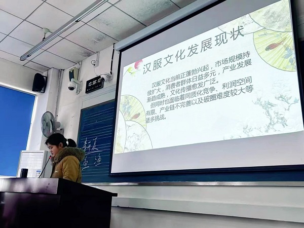 大三《艺术经纪人实务》课程以“汉服文化与艺术经纪的跨界融合”为主题,分析了艺术经纪人通过专业素养将汉服文化推向世界的可能性,探索了汉服文化在设计师经纪、汉服文化IP运营和高端收藏市场方面融合的路径。