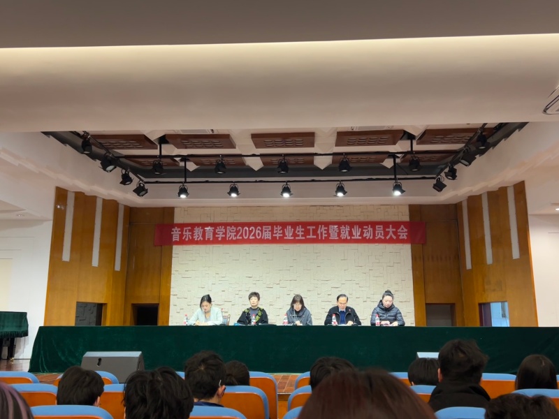为扎实推进2026届毕业生及就业工作,引导毕业生树立正确就业观,3月9日上午9时,音乐教育学院2026届毕业生工作会暨就业动员大会在学校小音乐厅举行。学院领导班子成员、教学秘书、毕业班辅导员及2026届全体本硕毕业生参会,会议由周英主持。 党委副书记、院长柳良结…