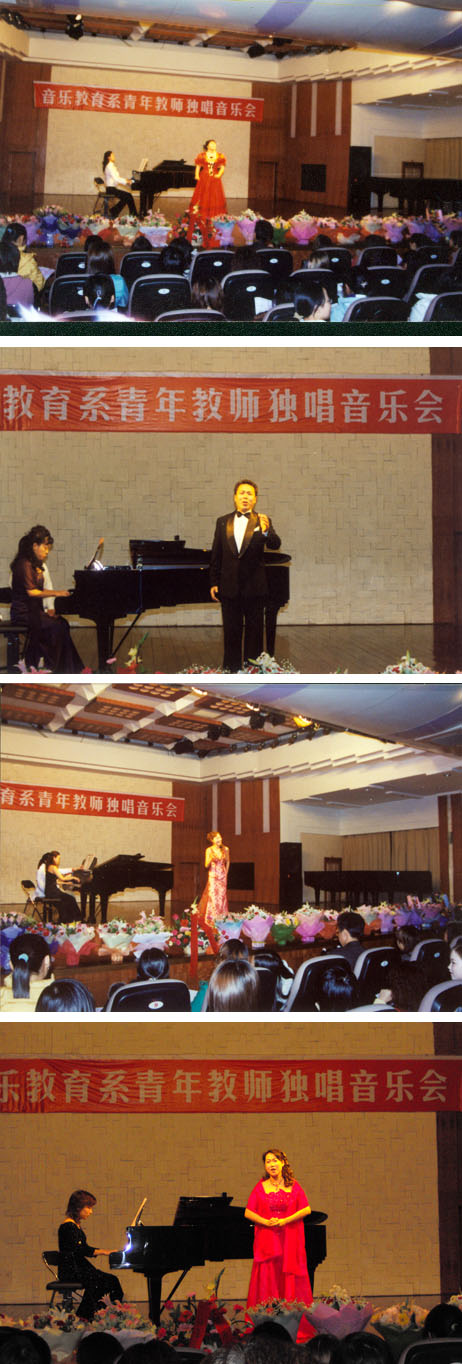 2005年11月21日晚7点半,音乐教育系青年教师独唱音乐会在本院小音乐厅举行。参加本次音乐会的皆为我系声乐教研室的青年教师,绝大多数都曾参加省级以上声乐大赛并取得优异的成绩。当晚,会场内座无虚席,在场观众都被他们精彩的演唱所吸引,不时迎来一阵阵热烈的掌声。音乐会结束后,敖院长也上台与演员门一一握手并合影留念。老师们被同学和鲜花簇拥着。音乐会受到了师生的一致好评取得圆满成功。