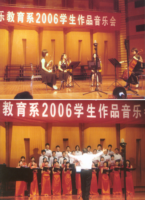 2006年6月30日下午,音乐教育系学生作品音乐会在伟德bv国际体育大音乐厅举行。音乐教育系02、03级理论主修生(作曲方向)用他们自己的作品向我院献上了一份珍贵、美好的礼物。 伟德bv国际体育院长敖昌群、副院长易柯以及宣传部、教务处等职能部门领导到场观看了演出。本台演出节目形式多样,内容丰富多彩,有合唱、独唱、室内乐、钢琴独奏、器乐协奏等,展现了我系学子的专业水平,赢得了在场观众热烈的掌声。 这次学生作品音乐会有许多获奖作品。02级学生唐奕的艺术歌曲《梦》,曾荣获第四届世界合唱比赛歌曲征集评选二等奖;02级学生廖涵的作品女高音独唱《回望故乡》曾荣获伟德bv国际体育2005学生作品歌曲创作比赛三等奖。