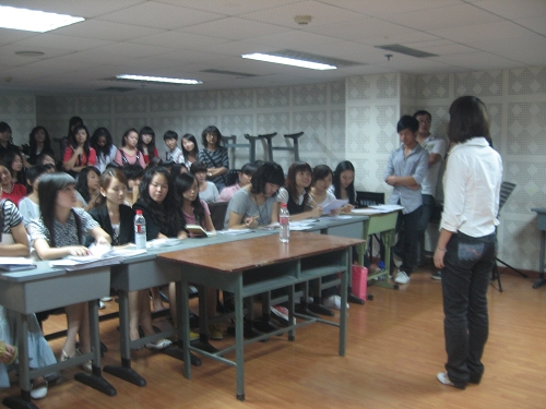 2009年9月24日,音乐教育系学生会招新工作在十二楼大教室进行。同学们带着服务他人、锻炼自己的信念,大方自信地介绍了自己,充分展示了自己的才华。同学们都多才多艺,更有不少为了这次招新精心准备了才艺展示。2009级新生刘宛航同学,一曲舞蹈《剪纸姑娘》,加上流利的顺口溜,把活动带入高潮,精彩至极;马丽雅同学颇有大将风范,备受青睐;有的男生幽默搞笑,把气氛搞得非常活跃。学生会各部门负责人认真负责,积极提问,努力为学生会选出一批优秀的新成员。