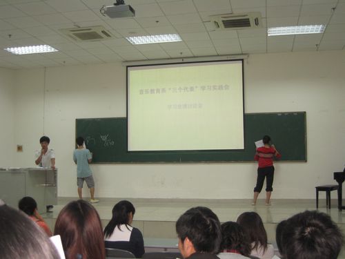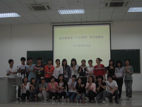 2010年5月31日,为了让社团成员对世博会内容有一个更深刻的认识和理解,将大学生活与国家大事更加紧密联系起来,音乐教育系“三个代表”学习实践会围绕世博会举行了一次讨论会。音乐教育系团总支书记王蜀南老师、全体“三个代表”学习实践会成员以及院学生会社团部同学参加了讨论会。