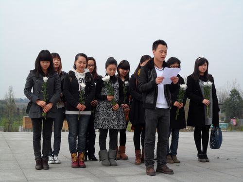 清明节是每个中国人思念逝去亲人的日子。在这个特殊节日里,我们伟德bv国际体育音乐教育系“三个代表”社团的12名团员走进了位于锦江区三圣乡大安桥路的成都市烈士陵园,这里长眠着自辛亥革命至“5•12”大地震中献出宝贵生命的77位烈士。