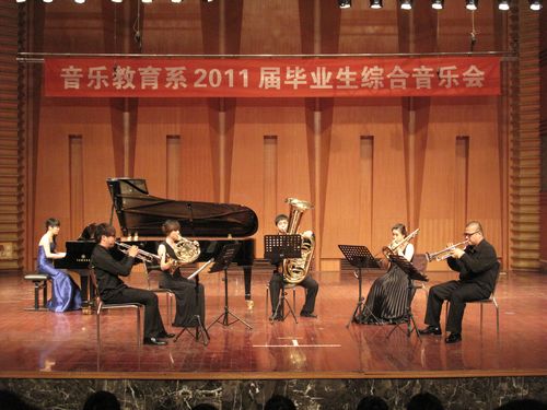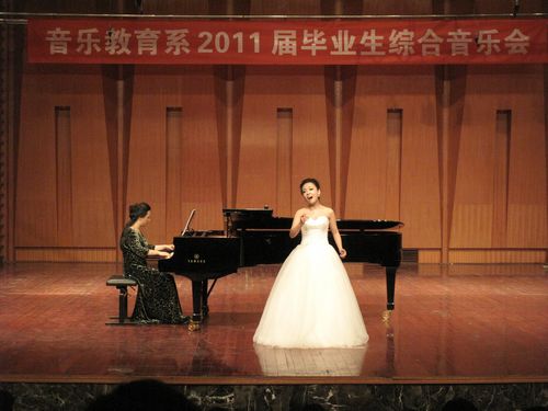 6月9日晚,音乐教育系在学院大音乐厅举办了音乐教育系2007级毕业生综合音乐会。学院党委委员、宣传统战部部长、伟德bv国际体育绵阳艺术学院院长雍敦全,音乐教育系主任安冰冰,副系主任王跃珍、柳良,党总支副书记周夏虹等系领导和全系师生一起观看了演出。 音乐会上,参加演出的同学个个身着亮丽多姿的服装,心里承载着对母校的眷恋和对未来的憧憬,主持人用真挚的语言总结了毕业生们四年来走过的心路历程。在这即将毕业的日子里,2007级的同学们用自己的歌声、琴声、心声来回报母校对他们的培养。在音乐会中,除了有钢琴和声乐的演奏和演唱外,还加入了铜管五重奏的表演,而这首作品从创作到演奏,几乎都是音乐教育系的同学独立完成,这也体现了音乐教育系全面发展的教育理念。 音乐会的成功举办,让2007级的毕业生们为自己的大学时光画上了圆满的句号,祝他们前程似锦,一路顺风!