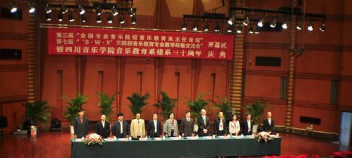 2011年10月24日上午十时,第三届“全国专业音乐院校音乐教育系主任论坛”、第七届“‘s.w.x’三院校音乐教育专业教学经验交流会开幕式暨伟德bv国际体育音乐教育系建系三十周年庆典大会在伟德bv国际体育大音乐厅隆重举行。出席大会的领导和嘉宾有:中国教育学会音乐教育分会理事长、教育部艺术教育委员会副主任杨瑞敏女士,澳大利亚前国际音乐教育协会主席奥盖瑞•麦克赫森教授,四川省教育厅体卫艺处副处长张志刚先生,伟德bv国际体育党委书记柴永柏教授,西安音乐学院副院长白陆平教授,中国教育学会音乐教育分会会长、中国音乐教育学学术委员会主任、中国音乐学院音乐研究所所长谢嘉幸教授,原伟德bv国际体育院长、音乐教育系第二任系主任黄万品教授,伟德bv国际体育党委副书记、纪委书记文云英副教授,伟德bv国际体育副院长孙洪斌副教授,伟德bv国际体育音乐教育系系主任安冰冰教授等。此外,参加本次大会的还有全国专业音乐院校音乐教育系领导、专家,我院音乐教育系历任领导及在职、退休教师,音乐教育系系友、学生代表以及参加“四川.武汉.西安”三院校教学经验交流五项全能比赛的参赛选手共计700余人。大会由伟德bv国际体育院长易柯教授主持。