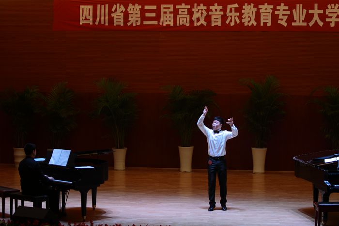 为推动高校音乐教育专业的改革发展,满足和适应当前基础教育课程改革和未来教师专业化发展的需求,切实提高高校音乐教育专业的人才培养质量,并为参加全国第七届高校音乐教育专业大学生基本功比赛做好准备,由省教育厅主办的“四川省第三届高校音乐教育专业大学生基本功比赛”于本月10日,在风景如画的阿坝师专圆满落下帷幕。 我院由院领导、指导教师、参赛选手共二十人组成的参赛队高度重视、精心准备,也借助此次比赛平台积极与兄弟院校切磋、交流。经过三天的激烈角逐,我院选手蒋诗瑶、戴鹏飞、施乐不负众望,包揽合唱指挥、即兴弹唱、自弹自唱、音乐综合知识、钢琴演奏、歌唱与钢琴伴奏多个单项一等奖,并取得全能第一和团体总分第一的优异成绩!特向学校领导、师生汇报,并向获奖选手和指导教师表示祝贺!