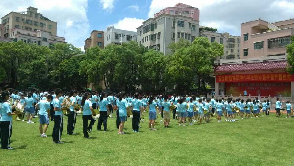2014年7月12日-7月19日,受深圳市宝安区西乡街道政府邀请,我院管乐教育专业共计45名师生为该街道的11所中小学共计583名学生举办了为期7天的管乐夏令营。 期间,师生们为583名学生组织了形式多样的课程以及乐团排练课,以及高强度的行进管乐排练。短短的七天里,学生们不仅完成了两首规定曲目,还在管乐教育专业老师的指导下,把自己学校的参赛曲目练得更加细致完善。 本次夏令营的最高潮部分莫过于583名学生的管乐大合奏。宏伟激昂的《我的家在日喀则》与《非洲交响曲》奏响着这7天的付出与耕耘,成长与收获。孩子们不管个人能力还是乐团的合奏能力都得到了质的提升。 本次夏令营使管乐教育专业学生再一次得到可贵的实践经验,为以后的教学打下坚实的基础。