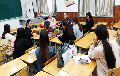 2016年10月19日,音乐教育学院院长安冰冰教授、孟辉老师来到音教学院大四学生实习基地——磨子桥小学进行实习调研工作。安院长首先听取了大四实习生袁欣怡、肖超威两位同学的现场授课。听完授课后,安院长与在磨子桥实习的8位同学以及磨子桥音乐教研组组长、实习负责人郑煜老师、孟辉老师一起进行了教学实习工作座谈会。 座谈会上,安院长首先对实习学校领导和负责老师的工作支持表示感谢。之后,主要针对实习生教学手段的多样性及教态等问题对二位同学的授课进行了点评。会上,安院长与实习同学们热烈讨论,同学们也积极表达了实习的重要性、以及自己实习后的感受。 安院长在听取了学生们的反馈后,就大学的课程设置与培养真正合格的中小学音乐教师问题做了深入的发言。同学们认真聆听,都表示非常希望能有更多的机会进入到真正的学校、自己站上讲台进行教学。感谢学院给他们提供了这样一个宝贵的学习机会。会议在热烈的气氛中结束。同学们都很受鼓舞,希望能学习更多的知识,为成为真正合格的中小学老师准备着。