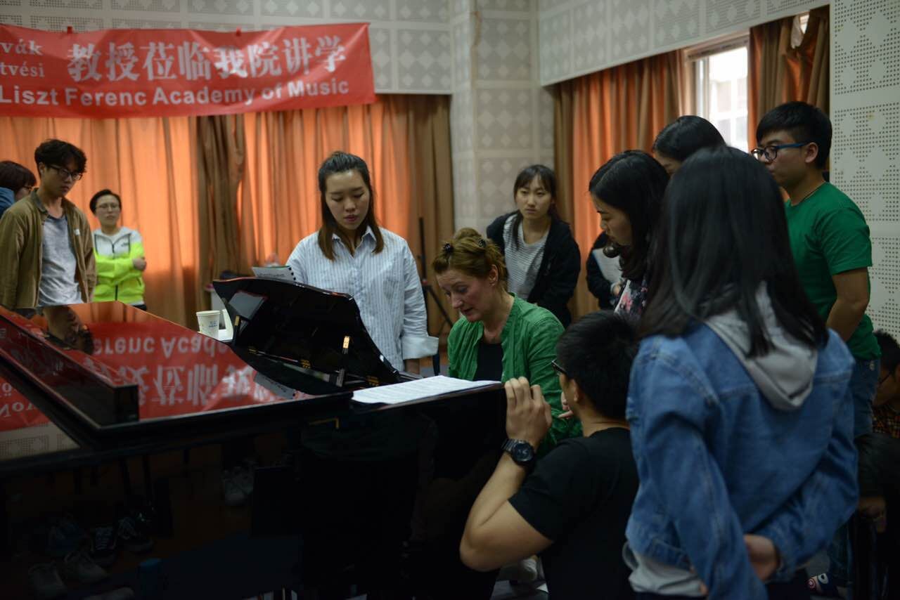 2017年4月17日_21日,应伟德bv国际体育音乐教育学院的邀请,两位匈牙利李斯特音乐学院的教育专家Aniko 和katalin莅临我院进行柯达伊教育体系的大师课讲学,我们终于迎来了期待已久的为期一周的“ZeneZen—匈牙利音乐学院教授Katalin Körtvési&Anikό Novάk钢琴表演与音乐技能训练、基于钢琴的体态律动教学大师课”。 大师课学院是来自伟德bv国际体育音乐教育学院的不同年级的学生,涵盖本科生到研究生,有新体系课班的学生,钢琴主修生、声乐主修生以及普修生,一个团队从最开始的陌生,通过音乐互相熟悉认识形成默契,在两位专家热情似火的带动下,通过对音乐的感知,对体态的韵律带动我们,让我们热忱的进入到了一个崭新,全面生动又有意义的音乐教育,我院老师和学生都积极的参与这次大师课的观摩学习活动,大家收获颇多,受益匪浅,在音乐教育钢琴体态律动这一学科里收获颇多,为音教学院学生翻开了新的学习篇章。