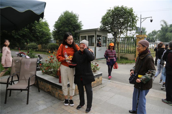 到了成都市温江择一城颐养居,老师和同学们对颐养居的老人们进行了慰问、关心活动,亲切地与老人们交谈、聊天,让老人们感受到了我院青年志愿者的热情与温暖。