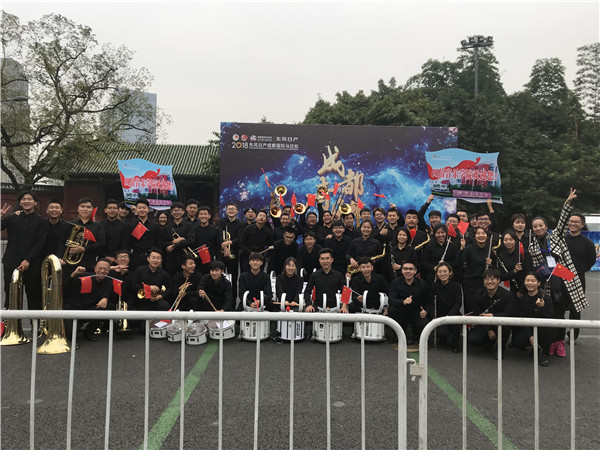 伟德bv国际体育音乐教育学院管乐团参加“2018年成都国际马拉松”音乐加油站表演活动