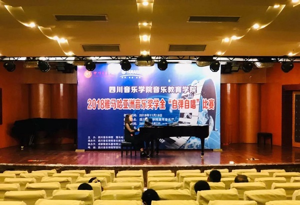 由我院主办,雅马哈乐器音响(中国)投资有限公司提供奖学金,成都雅音乐器有限公司协办的“2018雅马哈亚洲音乐奖学金”自弹自唱比赛初赛于2018年11月19日落下帷幕。本次自弹自唱比赛初赛共有50名选手参赛,选手的参赛曲目包括一首自选曲目和一首抽签曲目,其中抽签曲目由主委会于比赛前两天组织选手统一抽选。比赛评委团由我院钢琴教研室主任贺丹为老师、声乐教研室主任郭敏老师、理论教研室即兴配奏专业戚頔老师、自弹自唱专业蒋诗瑶老师、特邀声乐艺术指导孔磊老师组成。经过一整天的紧张角逐,最终评选出16名选手入围下一轮决赛。 本次比赛的组织和赛务工作由我院理论教研室主任李勇老师和院办公室以及理论专业研究生们承担,在此特别感谢他们的辛劳付出。