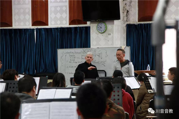 Dr.Salzman教授在与伟德bv国际体育管乐团交流中说到:“看到这么多的学生在学习管乐教育,能看到十年后中国的管乐会发展到一个很高的高度”。并对于川音管乐与乐队训练专业寄予很好的期望。
