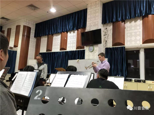 2019年3月22日至3月25日,华盛顿大学管乐团师生由Dr. Salzman领队来蓉,与伟德bv国际体育管乐团及川音音乐教育学院的师生进行了为期四天的管乐艺术交流活动。内容涉及管乐团室内排练、管乐教学技巧、小号大师课,以及双方乐团的联合演出。