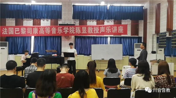 2019年6月18日,由我院声乐教研室主办的法国巴黎SCHOLA CANTORUM高等音乐学院陈昱教授专家讲学圆满结束。 此次专家讲学,陈昱教授对我系十多位学生进行了授课,从学生的演唱水平和音乐的表达上都给予了高度评价,陈昱教授表示希望今后能在川音音教学院和巴黎司康高等音乐学院搭建起友谊的桥梁,为更多的川音学子提供学习交流的平台。