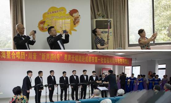 2019年9月21日,正值中秋佳节到来之际。在音乐教育学院领导们的指导和支持下,由段一帆老师带队,音乐教育学院“新声路六号”男声合唱团与成都市海星合唱团前往成都市第一社会福利院为老人们送上中秋的祝福。
