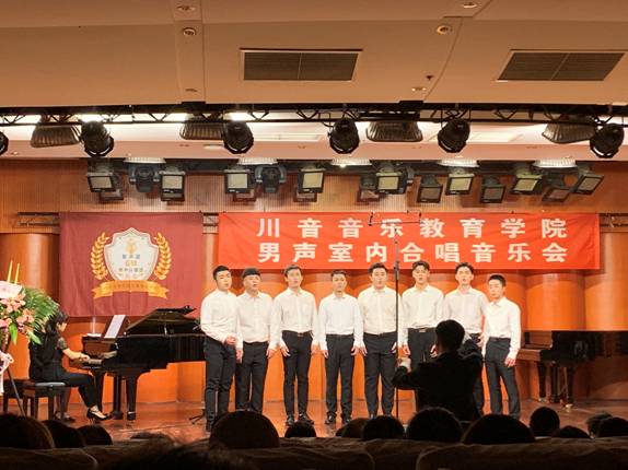当日下午,受成都市棕北中学邀请,为了推广高雅艺术进入中小学校园,由朱新天老师带队,“新声路六号”男声合唱团代表音乐教育学院参加了棕北中学庆祝中华人民共和国成立70周年诗歌朗诵活动,由杨光老师担任指挥。该活动在棕北中学已经有十几年的举办历史。合唱团演唱了《踏雪寻梅》和山东民歌《渔歌》,获得了学校领导和全体师生家长的热烈欢迎。