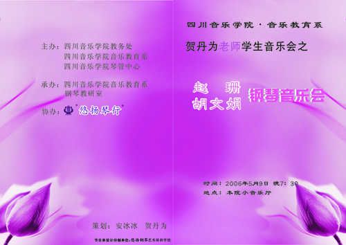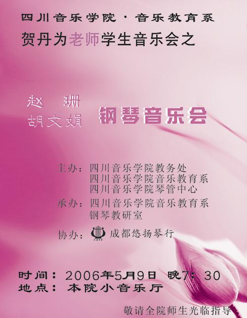 伟德bv国际体育音乐教育系贺丹为老师学生音乐会之赵珊、胡文娟钢琴音乐会