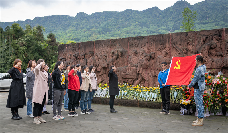 碧血丹青铸青史,巍峨莱岭话英雄。为隆重纪念中国共产党成绩100周年,2021年4月14日,音教学院党总支部分党员师生前往邛崃红军长征纪念馆开展主题党日活动。
