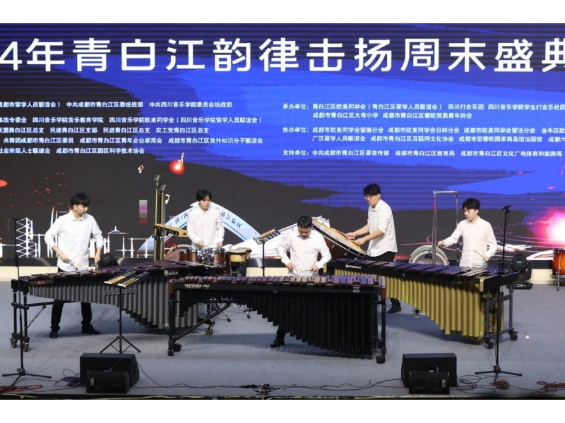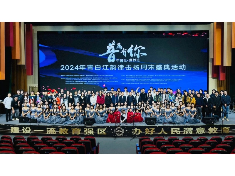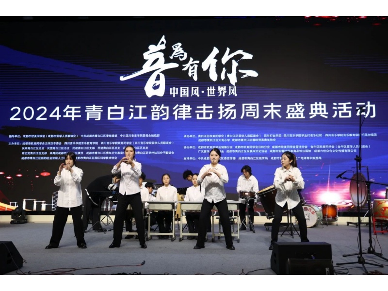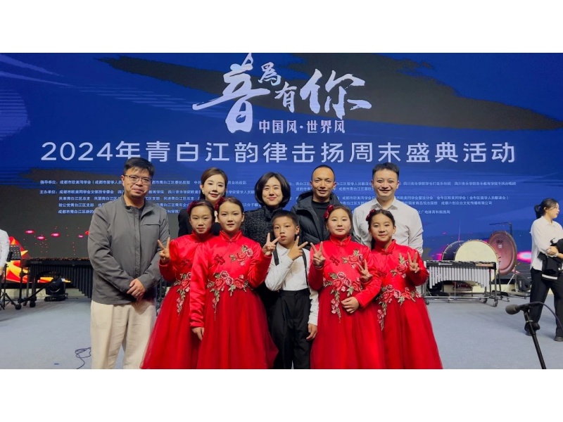 2024年11月16日,音为有你 中国风·世界风——2024年青白江韵律击扬周末盛典活动在成都市青白江区大弯小学南区分校圆满举办。我院青年教师白海川、罗实、刘梦然带领学生打击乐社团、千风合唱团、凉山州布拖县支教学生团队参加此次活动。