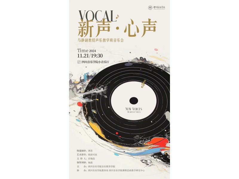 马静副教授声乐教学班将于11月21日19:30在小音乐厅举办《新声·心声》音乐会。本次音乐会不仅展现声乐教学成果,更是以艺术形式践行高校服务社会的使命。