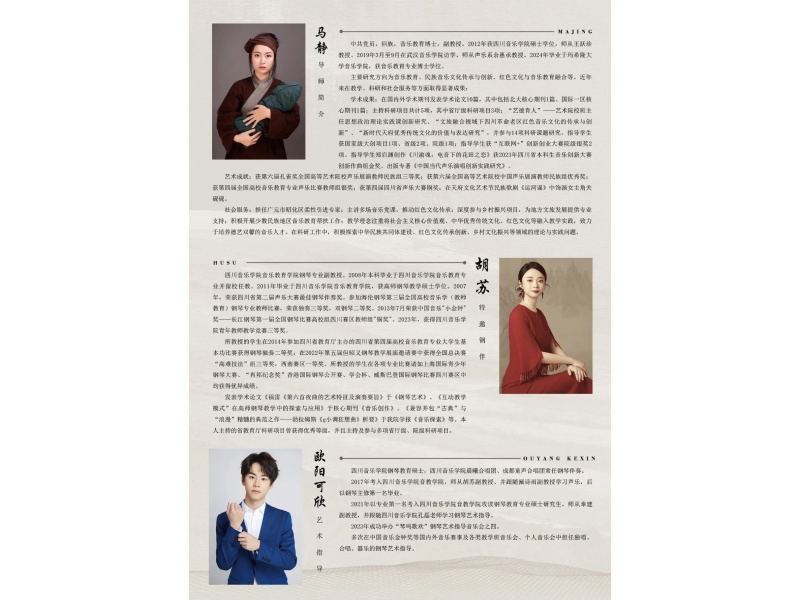 其中,原创作品《桂花乡韵》由马静老师与其学生共同创作,该作品依托佘年 2022 年国家级大学生创新创业训练计划项目“红音飞扬 - 奏响四川革命老区乡村红色旅游振兴的旋律”,专为广元市昭化区桂花村打造。歌曲旋律优美,生动展现了这座千年古村深厚的人文底蕴与特色产业,从古老的桂花树到迷人的稻田风光,从蓬勃的文旅发展到伟大的乡村振兴战略实践,宛如一幅鲜活的乡村画卷徐徐展开。