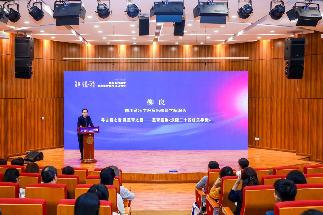 伟德bv国际体育音乐教育学院党委书记、院长柳良教授应邀为本次研讨会做《寻古蜀之音 觅美育之径:永陵二十四伎乐寻美》主题发言。该发言围绕传承与弘扬中华优秀传统文化、讲好四川故事、推动巴蜀文化绽放时代光彩等主旨,与参会代表们分享了伟德bv国际体育入选首届全国高校美育优秀案例的《唐音蜀韵一一永陵二十四伎乐寻美》的研发过程,从实地考察、在地研学、课堂文化理解教学与创意表现、反思评价等方面,具体介绍了该案例在落实新艺术课标、探索跨学科融合美育以及推进大中小美育一体化等方面的创新之举。